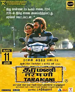 Taramani is a 2017 Indian Tamil-language drama film written and directed by Ram. He co-produced the film with J. Satish Kumar under his production company Catamaran Productions. The film stars Andrea Jeremiah, Vasanth Ravi and Adrian Knight Jesly, with Anjali appearing in a cameo. The venture began production in August 2013 and was released after several delays on 11 August 2017. The film was received with positive reviews and it was a sleeper hit at the box office. Eyes Wide Shut, Y tu mamá también and Knife in the Water were the inspirations for this film.[1] For his performance as a lead actor in this debut film, Vasanth Ravi received The Best Debut Actor award at the 10th Vijay Awards and at the Jio 65th South Filmfare Awards in 2018.[2]