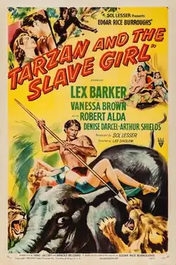 Tarzan and the Slave Girl is a 1950 American adventure film directed by Lee Sholem and starring Lex Barker as Tarzan, Vanessa Brown as Jane, and Robert Alda as big game hunter Neil. The fourteenth film of the Tarzan film series that began with 1932's Tarzan the Ape Man, the plot involves a lost civilization in Africa, a strange illness, and an evil counselor manipulating a prince into kidnapping large numbers of local women.