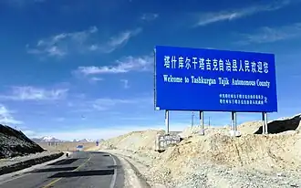 ![]() A sign welcoming motorists to Tashkurgan Tajik Autonomous County | |||||||||||||||