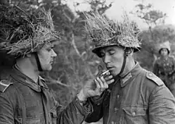 After military setbacks during Operation Barbarossa and protests by the government of Turkey on the treatment of Muslim Soviet prisoners of war, Nazi Germany organised the Idel Ural Legion in 1942. Comprising Tatars as well as other ethnicities within the Idel-Ural region, the Idel Ural Legion included some Tatar nationalists and was stated in German propaganda leaflets to be aimed at the restoration of the Idel-Ural State as independent from the Soviet Union. Most of its members, in addition to their status as prisoners of war, also stated different reasons for joining, such as anti-Russian sentiment, opposition to collective farming, anti-communism, and their families' religion. At the time, members of the Legion did not view themselves as belonging to separate ethnic groups, instead consisting as part of one singular unit.[4] This manifestation of Tatar nationalism did not include its interwar-era leaders, such as İshaki, who, like many of his peers, was viewed with suspicion by the German government and sidelined.[5]