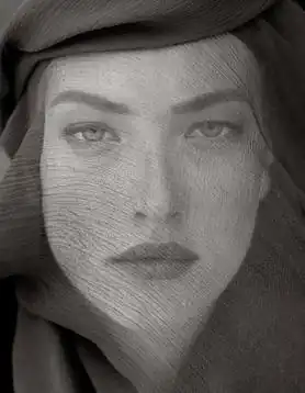 Tatjana, Veiled Head, Tight View, Joshua Tree, 1988 is a black and white photograph by American photographer Herb Ritts (1952–2002). A close-up framing the thinly veiled face of a woman, the image was photographed in Joshua Tree, California, in 1988.[1]