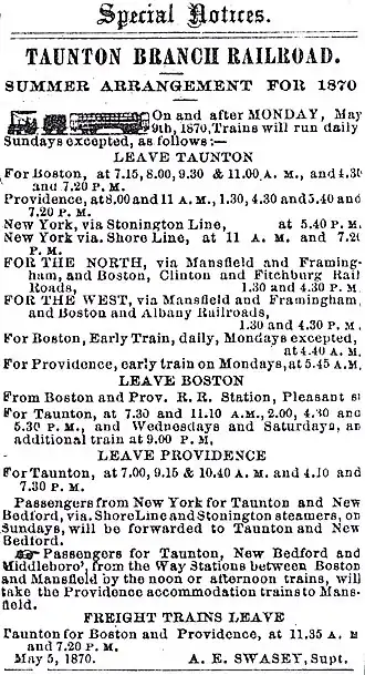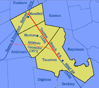 In 1871, the Taunton Railroad built a new connection to Attleboro, providing a shortcut to Providence.[7]
