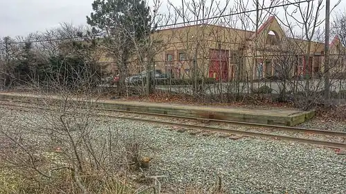 At several times during the South Coast Rail planning process, the site was under consideration as a station for MBTA Commuter Rail service to Boston. In September 1995, the MBTA filed an environmental notification form for construction of the project, with a routing following the Northeast Corridor to just north of Attleboro and a new bypass connecting to the branch line to Taunton. The station would have been upgraded to a full-length high-level platform to meet Americans with Disabilities Act requirements.[9] However, further reports suggested a route through Stoughton which would not stop at the station location, and the project was eventually cancelled in 2003.