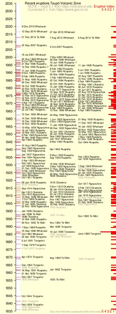 - ^ Newhall, Christopher G.; Dzurisin, Daniel (1988). "Historical unrest at large calderas of the world". USGS Bulletin. 1855: 1108. Archived from the original on 2009-05-12. Retrieved 2017-09-15. Citing Scott, B.J. (1986). Gregory, J.G.; Watters, W.A. (eds.). "Volcanic hazards assessment in New Zealand: Monitoring at Okataina Volcanic Centre". New Zealand Geol. Surv. Rec. 10: 49–54.