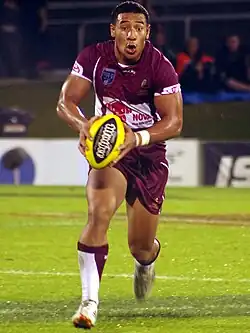 On 2 May, he played for Samoa in their Polynesian Cup clash with Pacific rivals Tonga, playing at fullback in Samoa's 18–16 loss at Cbus Super Stadium.[16] During the match, he tore his Anterior cruciate ligament, having to undergo a third knee reconstruction, ruling him out for the rest of the year.[17][18]