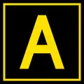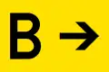 • Destination signs – black on yellow, similar to the direction signs. They indicate a destination at the airport and always have an arrow showing the direction of the taxi route to that destination. When the inscription for two or more destinations having a common taxi route are placed on a sign, the destinations are separated by an interpunct (•) and only one arrow is used.[5]
