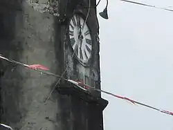 The basilica's 18th-century clock was erected in early 1900 on the belfry; it is one of the oldest and largest church clocks in Asia.[2][15] The clock is 0.5 m (1.6 ft) tall and has a circumference of 42 cm (1.38 ft). The hour and minute hands are 0.5 m (1.6 ft) and 62 cm (2.03 ft) long respectively. Running the clock are two weights connected by steel cable to the hour hand with a weight of 70 kg (150 lb) and 140 kg (310 lb) for the whole clock. The clock chimes once on the hour and half-hour.[2] It was refurbished in 1971 during the term of Monsignor Gregorio Salvatus.[15]