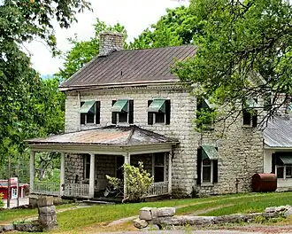 In 1750, Dr. Thomas Walker of Virginia publicized the location of Cumberland Gap, which brought a stream of long hunters down the Clinch and Powell valleys into what is now Claiborne County.[10] The land at the time was part of Cherokee and Shawnee hunting grounds,[11] and hostile attacks by members of these two tribes were not uncommon. To protect themselves, hunters, fur traders and early settlers erected a series of small forts and stations along the Powell and Clinch valleys. One such station, known as Fort Butler, was located just west of modern Tazewell.[12]