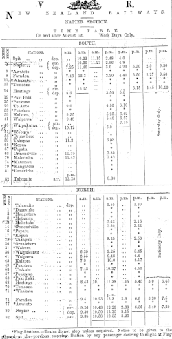 38. ^ "RAILWAY TIME-TABLE. HASTINGS STANDARD". paperspast.natlib.govt.nz. 28 April 1896. Retrieved 16 July 2021.