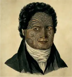 - ^ Portrait of Te Pehi Kupe, with full tattoo on face and wearing European clothes