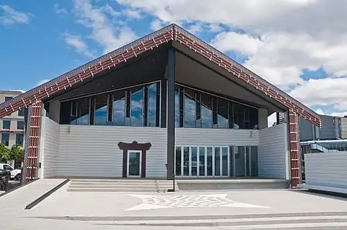 Te Raukura, otherwise known as Te Wharewaka o Poneke ("the waka house of Wellington")[1] is a building located on Taranaki Street Wharf, Wellington, New Zealand. It houses a conference venue (whare tapere), Karaka Cafe (whare kai), and waka house.