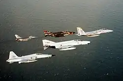 American and South Korean fighter aircraft flying in formation during Exercise Team Spirit 84