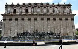 The Friso de los Fundadores de Guadalajara is installed on the building's exterior facing Plaza Fundadores. Completed by Rafael Zamarripa, the high bronze relief measures 3 m high x 21 m long and depicts the founders of Guadalajara.[5][6][7]