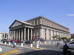 Teatro Degollado (Spanish: [teˈatɾo ðeɣoˈʝaðo], Degollado Theater) is a neoclassical[1] Mexican theater known for its diverse performances and artistic design. It is located in the central plaza of Guadalajara, Jalisco, Mexico on Belen Street between Hidalgo Avenue and Morelos Avenue. Many performances from cultural Mexican dances to international operas take place in this building.[2] Meant to be a monument of Guadalajara's culture, the theater was inaugurated in September 1866 and is a major landmark of the city.