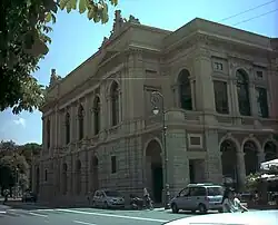 In 1797 the original theatre was destroyed by a fire, possibly by arson. Lucchini was contracted again to design a new structure to replace the old one and the new house opened on 30 June 1800. The structure uses a horseshoe shape with three tiers of boxes and two galleries.