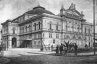The history of the Teatro Petruzzelli of Bari begins when Onofrio and Antonio Petruzzelli, traders and ship builders from Bari,[1] presented the designs for the theatre drawn up by their brother-in-law, the engineer Angelo Bari Cicciomessere (then Messeni) to the city of Bari. The proposal for building the Petruzzelli was accepted and, on 29 January 1896, a contract was signed between the family and the city administration. Two years later, in October 1898, work began and it ended in 1903.