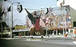 Teatro de los Insurgentes was one of the venues of the 1968 Summer Olympics, hosting the weightlifting competitions.[9] In order to host the Olympics, some modifications were made to the theater: a gym was built inside the theater as well as bathrooms, a sauna room and individual locker rooms for the competitors. A giant sculpture of a weightlifter, nicknamed "Judas", was placed on the Avenida de los Insurgentes in front of the venue.[10]