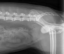 A form of electromagnetic radiation used to examine internal structures such as bones, blood vessels and some organs. In veterinary medicine, restraint methods such as sand bags, tying, manual restraint, and medications are used to increase easy of restraint