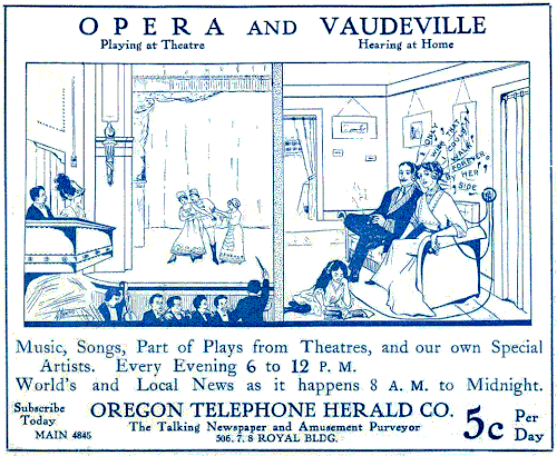 - ^ "Metered Music and Oratory Over Automatic Phone", Buffalo (New York) Express, March 12, 1914, page 8.