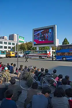 Television in North Korea is subject to the Korean Central Broadcasting Committee and controlled by the Propaganda and Agitation Department of the Workers' Party of Korea.[1] A study in 2017 found that 98% of households had a television set.[2] As of 2020, there are over-the-air broadcasts in both analogue and recently launched digital formats.[3]