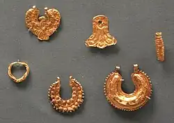 The Tell el-Ajjul gold hoards are a collection of three hoards of Bronze Age gold jewellery found at the Canaanite site of Tell el-Ajjul in Gaza.[1] Excavated by the British archaeologist Flinders Petrie in the 1930s,[1] the collection is now mostly preserved at the British Museum in London and the Rockefeller Museum in Jerusalem. The treasure ranks amongst the greatest Bronze Age finds in the Levant.[2][3]