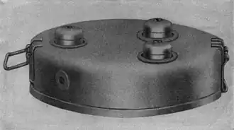 The Tellermine 29 is a round, metal-cased German anti-tank blast landmine. It first entered service in 1929, and the initial German defence plan was to purchase 6,000 a year, but in January 1931 it was decided to speed up the purchase process, and 61,418 were ordered.[2] By 1937, with the introduction of the Tellermine 35, it was being used for training, and the majority were sent to warehouses.[3]