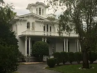 Temora, is a historic home located at Ellicott City, Howard County, Maryland. It is a T-shaped, two-story and cupola, Tuscan-style Victorian house of stuccoed tongue-and-groove boards. The house was built in 1857 after a design prepared by Norris G. Starkweather, a little-known but accomplished architect from Oxford, England, who also designed the First Presbyterian Church and Manse at West Madison Street and Park Avenue in the Mount Vernon-Belvedere neighborhood in Baltimore, Maryland, with his later more famous assistant - Edmund G. Lind.[2] The house was built for Dr. Arthur Pue Jr. on land given from his grandmother Mary Dorsey Pue of Belmont Estate.[3][4] The name of the estate Temora comes from the poems of Ossian[5]