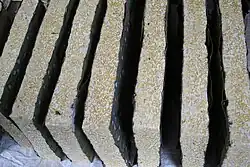 The term tempe is thought to be derived from the Old Javanese tumpi, a whitish food made of fried batter made from sago or rice flour which resembles rempeyek.[5] The historian Denys Lombard also suggests that it could be linked to a later term tape or tapai which means 'fermentation'.[6]