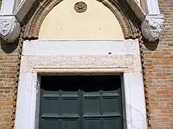 The entrance to the church, on the south, shows the origins of the temple in the architrave, with the coats of arms of the city and of the Orsi Carnelli family, from which starts a vertical pyramid-shaped tympanum.