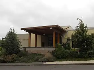 In 1952, the congregation constructed a one-story synagogue building on an almost 1 acre (0.40 ha) property at 2550 Portland Street.[4][9][10] Designed by architect and Holocaust-survivor Heinrich Hormuth (H.H.) Waechter, the building featured an interior courtyard that provided natural lighting, and "a network of ceiling beams painted with symbols and shapes" by Waechter.[10][11][12]