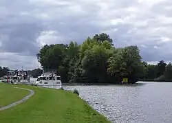 Temple Island is an eyot (being a small riverine island) in the River Thames in England just north (upstream) of Henley-on-Thames, Oxfordshire. The island is on the reach above Hambleden Lock between the Buckinghamshire and Berkshire banks, and is part of Remenham in Berkshire. The main significance of the island is that it lies at the start of the course for Henley Royal Regatta.