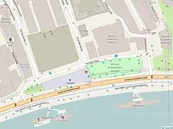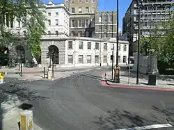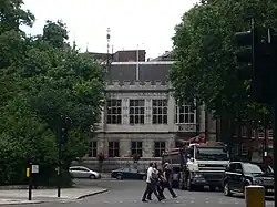 Two Temple Place was built on the north side at the eastern end in 1895. Around the same time, Bodley and Garner's London School Board Building was erected in Temple Place. It was replaced by Electra House, the headquarters of Cable & Wireless, in 1929. It was damaged during the Second World War when on 24 July 1944 a V1 flying bomb hit the east of the building, demolishing part of it, blocking Milford Lane and trapping people in rubble at 28 Essex Street. Three people died and seventeen were injured.[2] The building was repaired but demolished in 1999 and replaced by Globe House, the building that is now the headquarters of British American Tobacco.