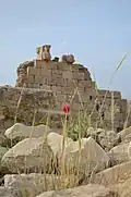 The Temple of Anahita is located near the Royal palace of Shapur I and adjacent to the Iwan-e Mosaic and Ceremonial Hall in the northeast of the ancient city of Bishapur, one of the capitals of the Sasanian Empire, 15 kilometers west of the city of Kazerun.[2]