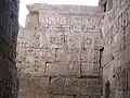 Numerous blocks with unmatched and inverted decorations can be seen, showing the amount of reconstruction and reuse of material from the surrounding temple complexes, especially in Ptolemaic times.