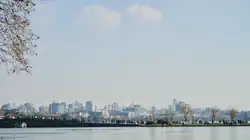 Views from the northeast of the main lake toward the three islands, with hills to the west, south, and east sides of West Lake[9]