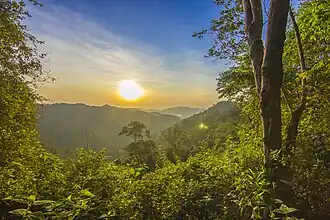 The Tenasserim–South Thailand semi-evergreen rain forests[2] is a tropical moist broadleaf forest ecoregion on Mainland Southeast Asia. The ecoregion extends north–south along the Kra Isthmus. It includes lowland forests along the coasts, and montane forests on the Tenasserim Hills and Bilauktaung range, which form the mountainous spine of the isthmus.