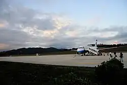 Tengchong Tuofeng Airport (IATA: TCZ, ICAO: ZUTC) is an airport serving Tengchong in the west of Yunnan Province. It is located near the village of Tuofeng (驼峰村), Qingshui Township, 12 kilometers south of the city seat. It takes about 15 minutes by car to arrive in central Tengchong City. The airport was opened on 16 February 2009.[2] Due to increasing demand, especially from domestic tourism, a new and much larger terminal (Terminal 2) opened on 9 September 2018.[3]
