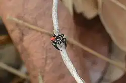 Day active individuals were found to rest in silken retreats constructed in curled dry leaves. A female was also observed in captivity, which laid eggs twice during the period and in the absence of leaves it was found in the corners of aquariums at night. It avoided mosquitoes, houseflies and ants but lavishly fed on fruit flies (of unspecified spp. of the Tephritidae or Drosophilidae families), on one instance, when 30 fruit flies were released into the box with the female, all of them were consumed in the same day. It guarded it's egg sac and ventured out only for capturing prey when the fruit flies were released in the box. A second egg sac was laid after a gap of about ten days and cannibalism among the newly hatched spiderlings was observed. While it took about 2 hours and 40 minutes for a spiderling to consume a fruit fly, it was about 15 minutes for the female.[2]