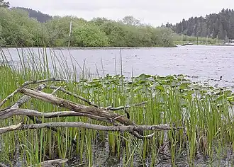 In the early 20th century, Tenmile Lake was a cold-water fishery that supported large populations of coastal cutthroat trout, salmon, and the sea-run steelhead.[1] However, the watershed was gradually altered by logging, farming, stream channeling, and the introduction of invasive fish species such as yellow perch and brown bullhead.[1] Attempts to restore the cold-water fishery, including poisoning Eel, Tenmile and North Tenmile lakes with rotenone in 1968, all failed. Bluegill and largemouth bass are among species that have since dominated the fishery.[1]