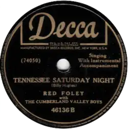 "Tennessee Saturday Night" is a Western swing ballad written by Billy Hughes.