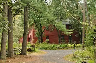 The Tenney Homestead is a historic First Period house in Stow, Massachusetts. This 2-1/2 story timber frame house dates to the first quarter of the 18th century, and has two distinctive characteristics. The first, its large central chimney, which is stone at its lower levels and brick from the attic up, is one of only a small number of surviving period houses in Middlesex County to use stone. The second is a section of horizontal sheathing that shows evidence of the application of paint by a sponge. The house was associated with the Tenney family from its construction into the 20th century.[2]