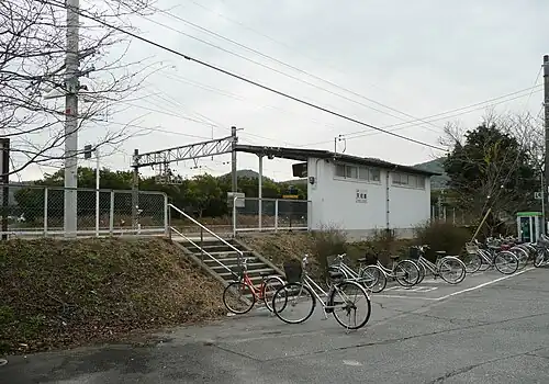 The station consists of one ground-level side platform serving a single-directional track, with the platform on the right side when facing in the direction of Okayama. There is no station building, and the station is unattended.