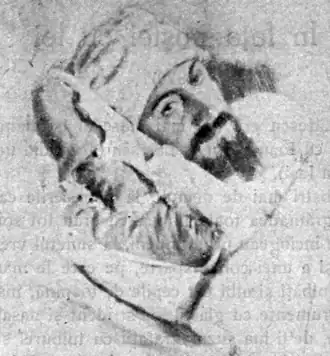 On the morning of 3 April, coinciding with Thomas Sunday, Boldur-Lățescu joined a delegation that also included Ceaur-Aslan, Orthodox Metropolitan Calinic Miclescu, and Constantin Moruzi Pecheanu, who visited Rosnovanu's home in Iași. They saluted the claimant's mother, to whom they communicated the "burning wish of Moldavia", namely that her son take the restored Moldavian crown.[40] One account by Iacob Negruzzi places Boldur-Lățescu at the Metropolitan Cathedral, where he stood up on a table and delivered his "violent speech".[41] His group, joined by men armed with clubs, firearms, and makeshift weapons, attempted to march on the Administrative Palace, which housed Catargiu and Prefect Golescu. They were pushed back by a unit of the Romanian Army, which, according to Negruzzi, took its orders from the poet-soldier Nicolai Skelitti—whose father, also a soldier, had joined the rebel camp as one of Rosonovanu's would-be ministers.[42] Their attempted use of bayonets was fended off by the armed populace, with new separatist arrivals joining in the scuffle. They included Boldur-Lățescu's sister Evghenia, who arrived with her then-husband, Costică Aslan. Wearing a red rose in her hair, she "urged the people to advance on the soldiers, who would not dare [...] to take aim at their Moldavian brethren".[43]