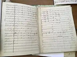 The autographs of the Federiciana Library in Fano were preserved thanks to Mabellini’s nephew, Adolfo, director of the library at the moment of his uncle’s death.[33][5] The library possesses, as aforementioned, the majority of the autographs, as well as many drafts, and even an attempt at an autobiography that was left unfinished.[5] In the collection, the autographs of the operas I veneziani a Costantinopoli (the only operatic fiasco by Mabellini) and Il Venturiero (written for Livorno in 1851 with Luigi Gordigiani) are not found. It is assumed that they can be found in the Archive of the impresario Alessandro Lanari, but still today, they are untraceable.[13] Also the autographs of Ginevra degli Almieri, Il convito di Baldassarre and Fiammetta are also patchy and incomplete (see also List of operas)