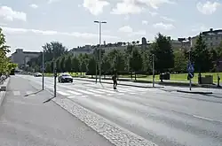 Traffic over the valley-like passage is over bridges, and the street has been called difficult to cross.[1] The street cuts Vallila in half, and has been said to favour throughfare of cars and to be a challenge for bicycles and pedestrians.[3] The new zoning plan for the area with new traffic solutions and park areas is intended to make the street less of a passageway, and to develop the street area as an area for jobs and as an extension to the city centre.[4][5]