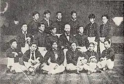 In July 1873, Major Archibald Lucius Douglas and 33 other instructors were invited from the Royal Navy as naval advisors to modernize the Imperial Japanese Navy.[3] Until then, the military school education had been strongly influenced by the Royal Dutch Navy since the end of the Edo period, but Douglas started his own style of education that emphasized practical discipline such as onboard training as well as mental preparation. Douglas' methods were sometimes opposed by Yamamoto Gonnohyōe and others, but his motto "Always be five minutes ahead of schedule" became one of the five pillars of the Imperial Japanese Navy mantra. This group of instructors led by Douglas laid the foundation for the Imperial Japanese Naval Academy.[4] Teragaki enrolled the academy in October 1873 as one of the 6th class of the academy. In addition to the Douglas group, Teragaki received the guidance of Kondō Makoto, Itō Toshiyoshi, Arai Yukan, Miura Isao and others. After undergoing on-the-job training with the IJN Kenkō, IJN Kongō and IJN Tsukuba, he became an ensign of the Navy in August 1979.[5]