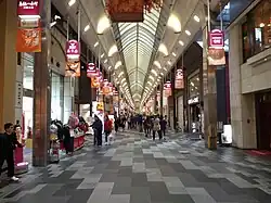 The area extending from Sanjō Street to Shijō Street is also an arcade containing an assortment of shops and services, both traditional and modern, which receives the name of Teramachi Kyōgoku Shōtengai (Compasso Teramachi).[1]