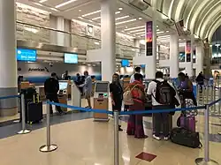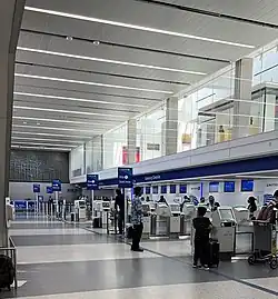 Terminal 7 has 13 gates: Gates 70A, 70B, 71A, 71B, 72A, 72B, 73, 74, 75A, 75B, 76A, 76B, and 77.[40] As of June 2022, this terminal, along with Terminal 8, serves as a hub for United Airlines.[16]