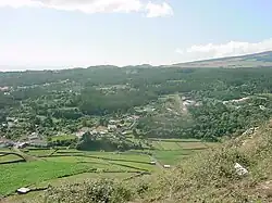 Another important area of activity in Terra Chã, which gave the parish the sobriquet title of terra dos pastores (English: land of the shepherds), was the raising and breeding of wild cattle. In the higher altitudes, above the Charcão and around Pico da Bagacina, there developed a lucrative bull-breeding business pioneered by a few rural gentry from Angra.[26] These promoters and provisioners of animals for the island's traditional bullfighting (Portuguese: toiradas-à-corda) contracted men from the parish to raise their animals, attaining a notoriety on the island's bullfighting scene. The bull-breeding industry attained a level of sophistication at the beginning of the 20th century, through the influence of the Corvelo and Barcelos whom conquered the market for the purposes of Terceiran bullfighting.[26] These cattle families would regularly transport their animals to holding pens through the streets of the village. The cattlemen would direct them down the Canada dos Pomares, Canada do Loural, Canada do Negro, Atalho das Lajes and Caminho do Tío Patrício, before they would be used in the traditional events.[26]