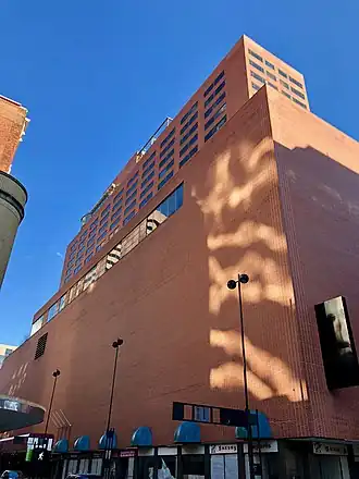 The hotel opened on July 19, 1948.[7] Emery sold the structure to Hilton Hotels on November 1, 1956 and the hotel was renamed The Terrace Hilton. When the hotel was sold, Emery transferred its modern art collection to the nearby Cincinnati Art Museum. The J.C. Penney store closed in 1968, while the Bond store closed in 1977. AT&T bought the building in 1983, converting the windowless second through seventh stories to a call center.[4] AT&T sold the structure to Oliveye Retail Limited Partnership, a group that included developers Emanuel "Manny" Organek and Marc Blumberg. The new owners switched the management of the hotel from Hilton to Crowne Plaza and the hotel became the Crowne Plaza Cincinnati. A massive redevelopment was announced in 2004.[8] The lower levels were to have their brick facade stripped and replaced with glass curtain walls. The lower portion would contain two stories of retail, three stories of offices, and two stories of apartments. The hotel tower would become a boutique hotel, known as the Next, while the top levels of the hotel would be converted to penthouse apartments.[4] The plans did not materialize, and the structure was sold to Sixth Street Cincinnati Association LLC in 2006. The Crowne Plaza Cincinnati closed on October 31, 2008.[4]
